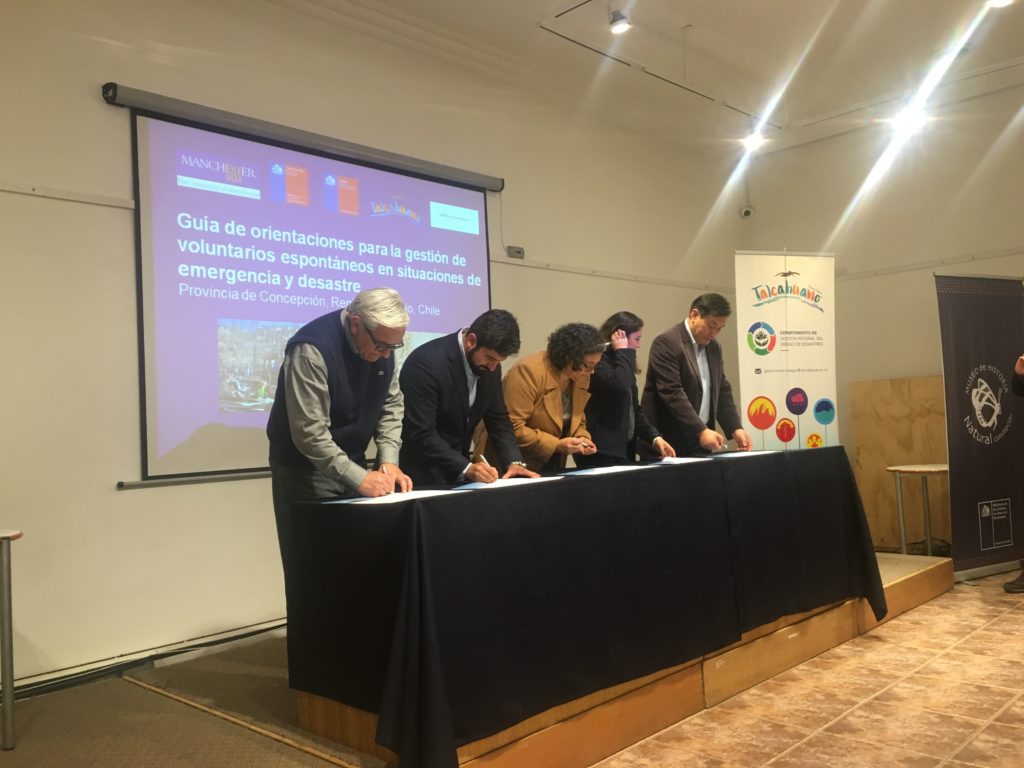 Región del Biobío. Como miembro de la Mesa Intersectorial para la Gestión de Voluntarios Espontáneos de la provincia de Concepción, Fundación Tierra de Esperanza, conjuntamente con la Universidad de Manchester, fue parte del lanzamiento de una guía única en el país que entrega orientaciones para abordar planificadamente la respuesta y recuperación frente a una emergencia o desastre desde el voluntariado espontáneo.