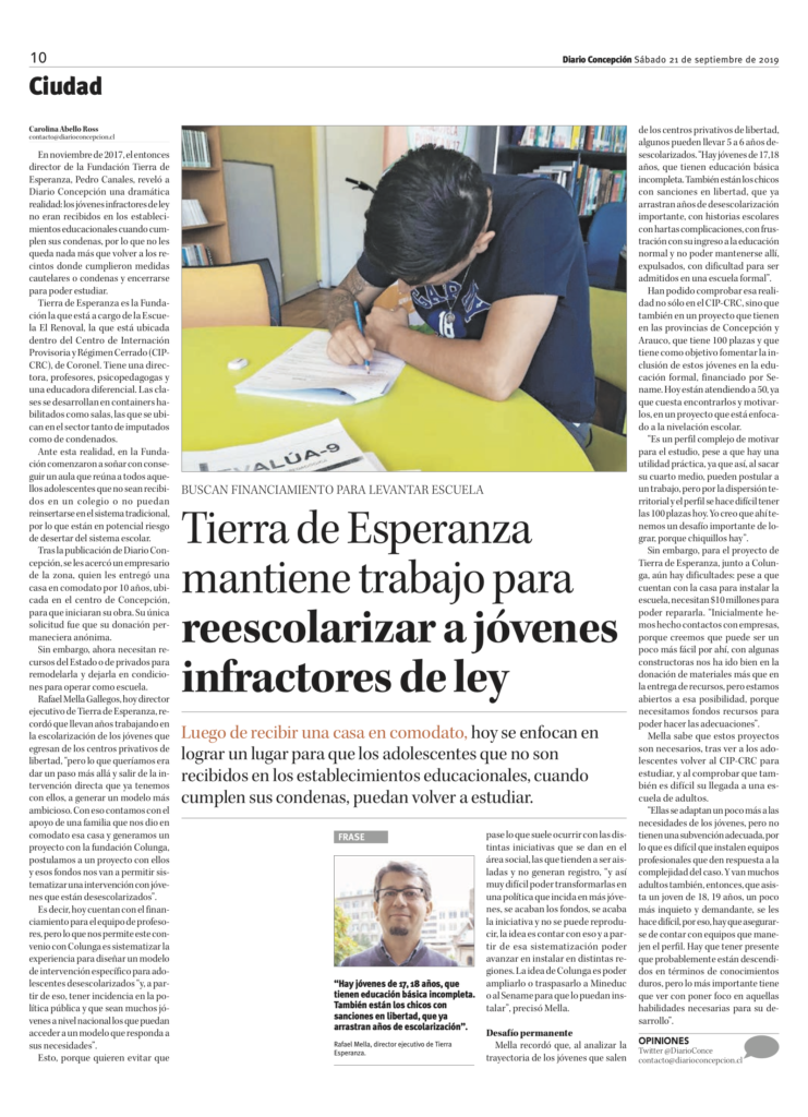 Getting your Trinity Audio player ready... TwittearCompartir0 CompartirCategorías: Noticias, Prensa25 septiembre, 2019Navegación entre publicacionesAnteriorPublicación anterior:¿Sabías que cada niño y niña tiene derecho a un nombre y nacionalidad?SiguientePublicación siguiente:En la prensa y columna de opinión: Prevención del suicidio adolescente.