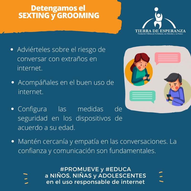 En el Día Nacional de Lucha Contra la Explotación Sexual Comercial Infantil, Fundación Tierra de Esperanza, ha querido poner el foco en dos prácticas relacionados con la Explotación Sexual Comercial de niños, niñas y adolescentes: el sexting y el grooming. Se conoce como “sexting” a la autoproducción de imágenes sexuales o al intercambio de mensajes o imágenes sexuales y la creación, el intercambio y la transmisión de imágenes de desnudos o casi desnudos sexualmente sugerentes a través de teléfonos móviles y/o internet. Aunque el sexteo es posiblemente la forma más común de material sexualmente explícito autogenerado en el que niñas, niños o adolescentes se pueden ver involucrados y que, frecuentemente, se realiza por y entre adolescentes que consienten, también existen muchas formas de “sexteo no deseado”. Esto se refiere a los aspectos no consentidos de la actividad, como compartir o recibir fotos videos o mensajes no deseados y sexualmente explícitos, por ejemplo, por parte de personas conocidas o desconocidas que intentan contactar o realizar proposiciones sexuales a la niña, el niño o el adolescente. El sexteo también puede ser una forma de acoso sexual, en la que una niña, un niño o un adolescente es presionado a enviar una imagen a otra persona, quien posteriormente la distribuye a través de una red social sin su consentimiento. El sexteo no deseado se relaciona con el acoso y comentarios sexuales indeseados y diversas investigaciones han demostrado que la práctica del sexteo no es neutral con respecto al género y que puede ser considerado como una extensión del acoso sexual contra las niñas. Respecto al “grooming”, hace referencia al proceso por el que una persona entabla una relación con una niña, un niño o un adolescente mediante el uso de internet u otras tecnologías digitales para facilitar el contacto sexual, en línea o fuera de línea. Es el acto de hacerse amigo de una niña, un niño o un adolescente, especialmente a través de internet, con el propósito de persuadir a la niña, el niño o el adolescente de mantener una relación sexual con posterioridad. Hoy en día, el período de tiempo entre la participación inicial del niño y un resultado delictivo es a menudo extremadamente corto y los delincuentes se concentran en obtener rápidamente influencia sobre la víctima en lugar de establecer en primer lugar una relación de confianza.
