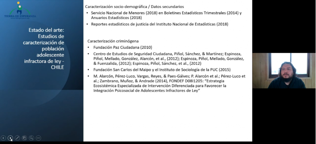 El seminario virtual congregó a más de mil inscritos y contó con las ponencias de la Facultad de Educación de la Universidad de Chile, Fundación DEM, Corporación Opción, y del mismo Servicio Nacional de Menores. Cabe destacar que la investigación Caracterización de Adolescentes Infractores de Ley en Chile, fue desarrollada por los profesionales de Fundación Tierra de Esperanza, Nelson Villagrán, Carlos Burgos, Karina Zuchel, Jaime Muñoz y Loreto Burgos.