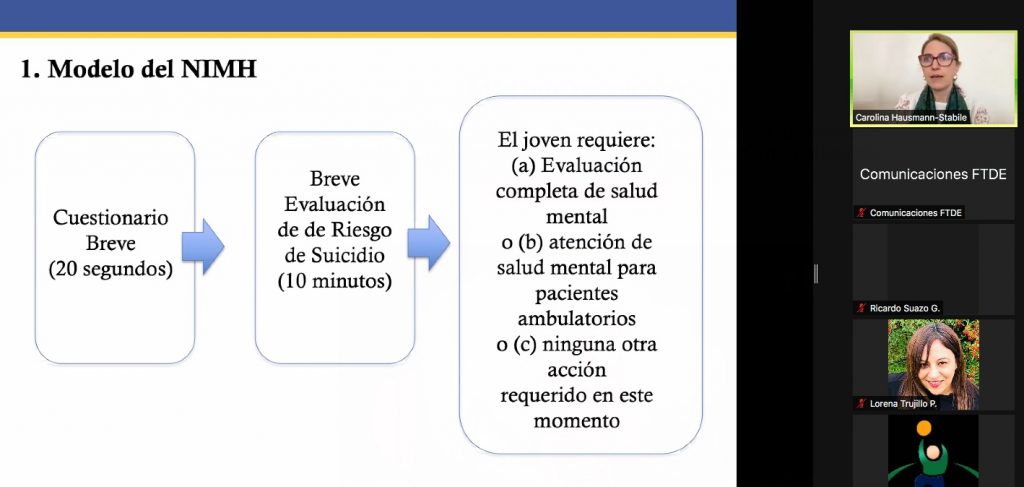 Cabe señalar que Carolina Hausmann-Stabille está desarrollando un trabajo con Fundación Tierra de Esperanza para acompañar el proceso de construcción de un sistema de vigilancia y protocolos asociados a la prevención del suicidio adolescente.