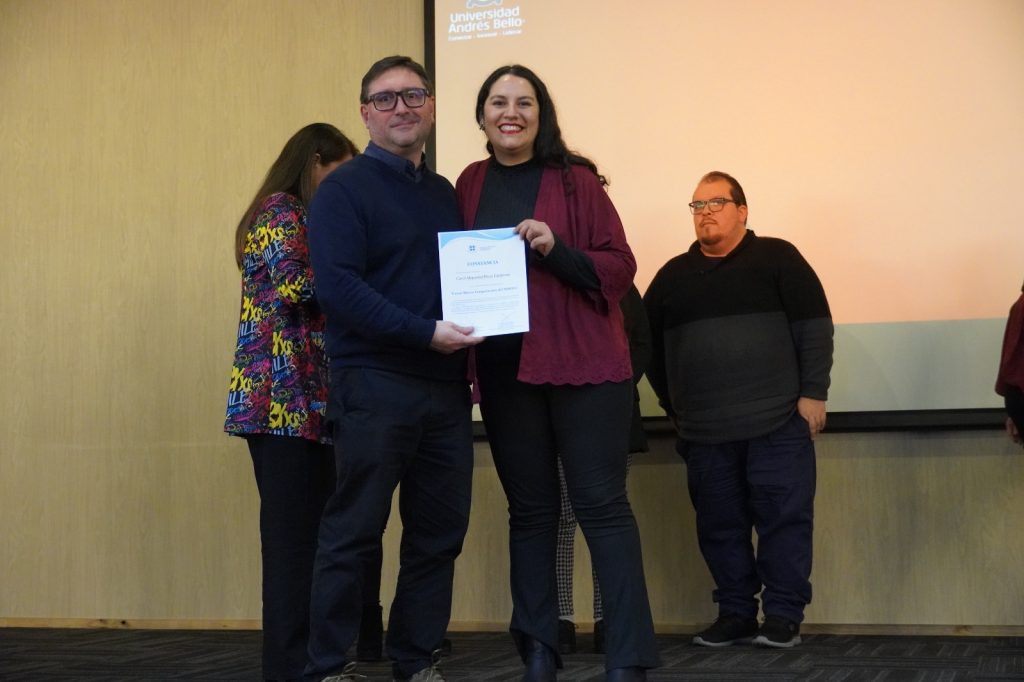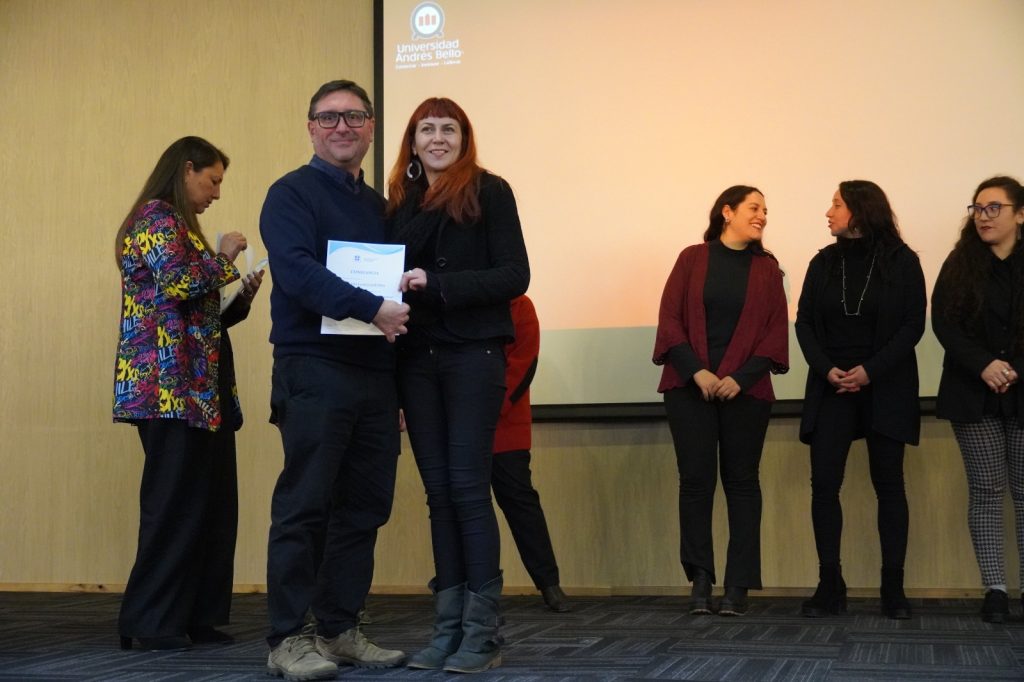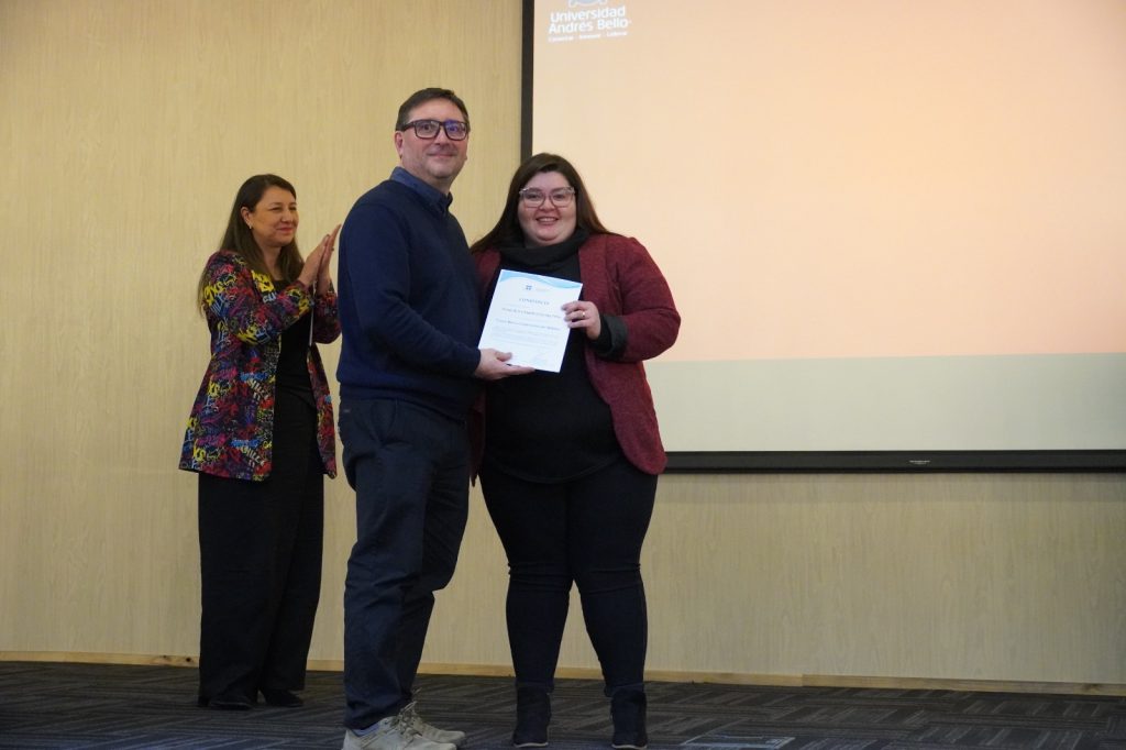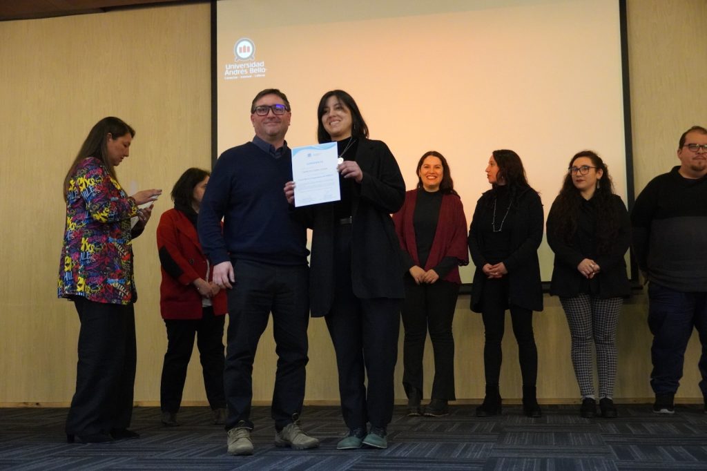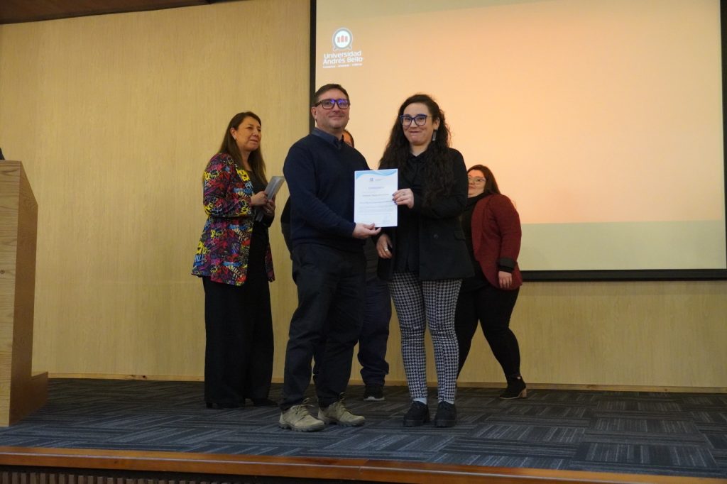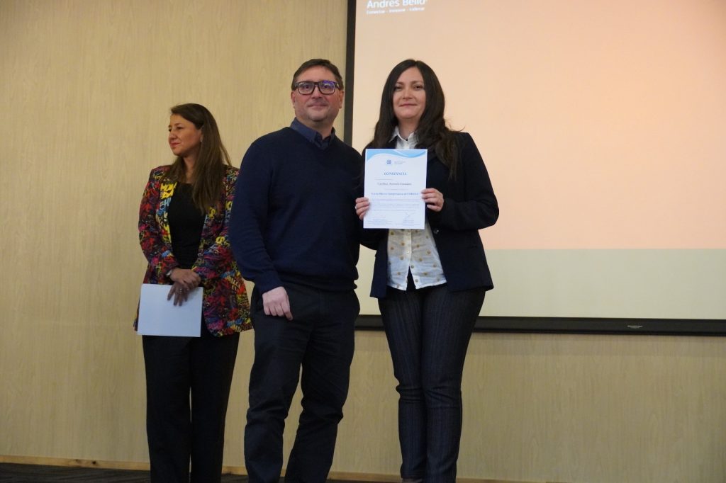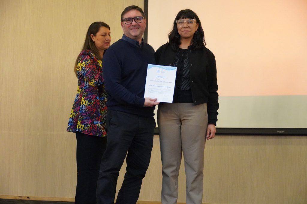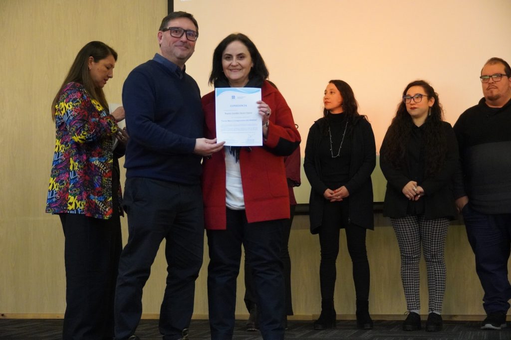 Al finalizar la conferencia, se realizó una ceremonia de certificación para 12 profesionales de Tierra de Esperanza que completaron el curso «Marco Comprensivo del Modelo Multidimensional de Intervención Diferenciada con Adolescentes Infractores de Ley», ofrecido en alianza con la Universidad de La Frontera. Este curso especializado les permitió profundizar en las trayectorias de adolescentes con comportamientos transgresores persistentes, comparado con aquellos que muestran comportamientos desadaptativos transitorios, reforzando la importancia de una intervención diferenciada y basada en la evidencia.
